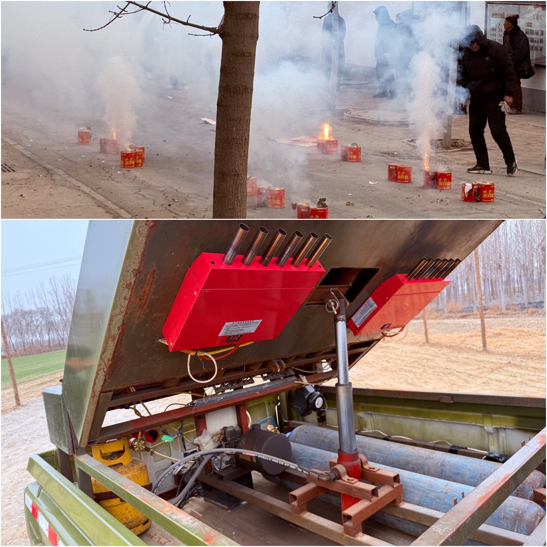 20个捆绑在一起的二踢脚吉祥雷同时燃放,还是相当的震撼。对比燃气版鞭炮礼炮车感觉还是不一样。