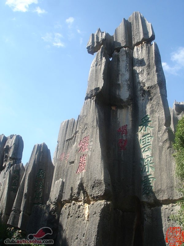 石林的招牌景观,才知道石壁上的石林两个字是当年龙云先生所提,文革被毁后又经龙云的儿子重写重刻的