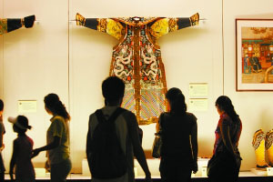 昨天,一名游客在参观清宫华服。记者欧阳晓菲摄