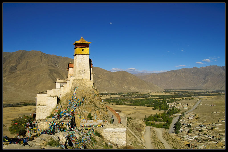 相传在西藏的神山“贡布山”上有三个仙洞,分别住着一位菩萨、一只因犯了戒律而由神仙变成的猴子和一位美丽的妖女,后来猴子在菩萨的授意下娶了妖女,生下了六只猴子,猴子一代一代繁衍下去而进化成为今日的藏族。贡布山的猴子洞是藏族的发源地,而它的具体位置就在拉萨东南约200公里的泽当。在泽当,不仅有刻满经符的猴子洞,而且还有藏族的第一块田和第一间屋。第一块田座落于泽当的北面,相传这块田是天神送给猴子种植食粮的,所以每逢播种时,人们都会在神田里抓一把土撒在自己的田上,祈求丰收;第一间屋位于泽当附近的乃东县,相传是藏民为他们的赞普修建的第一座房屋“雍布拉岗”,也是第一代赞普的王宫。雍布拉岗虽然已经破败,但昔日虎踞龙盘,雄伟壮丽之势依然可辨。在泽当,吃着飘香的糍粑和酥油茶、青稞酒,看着目光虔诚的身着氆氇长袍的藏民潜忍而过,想起自己此刻就在藏族的繁衍地雅砻河地区,心中更增添了一份对西藏的神奇感受。