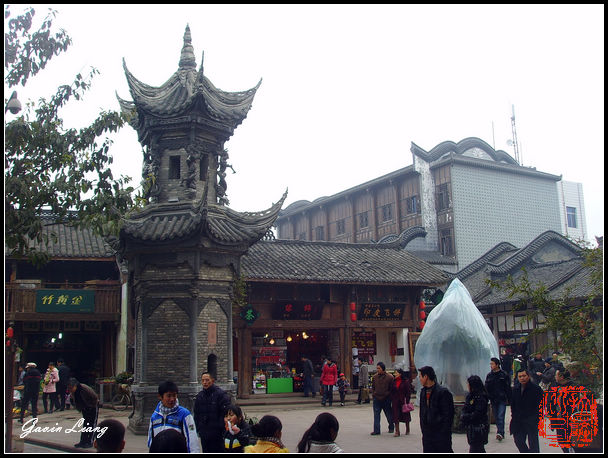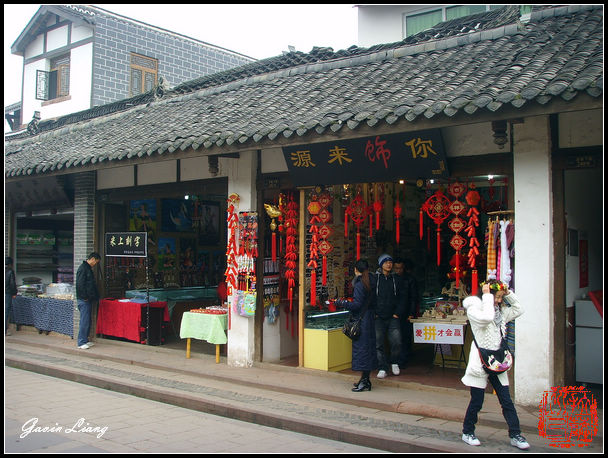 古镇古街入口,可以看出古镇的建筑风格和色调特色,也就在这里有古镇得名的八角井,是三国时蜀国太子刘阿斗跌落玉带的井