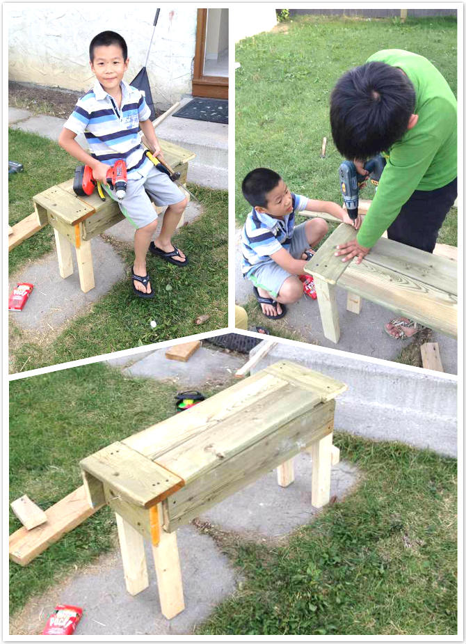 梁皓然到了加拿大很快就和哥哥妹妹们玩到了一起,在院子里孩子们一起做了一个板凳,搞的还像模像样,不错。