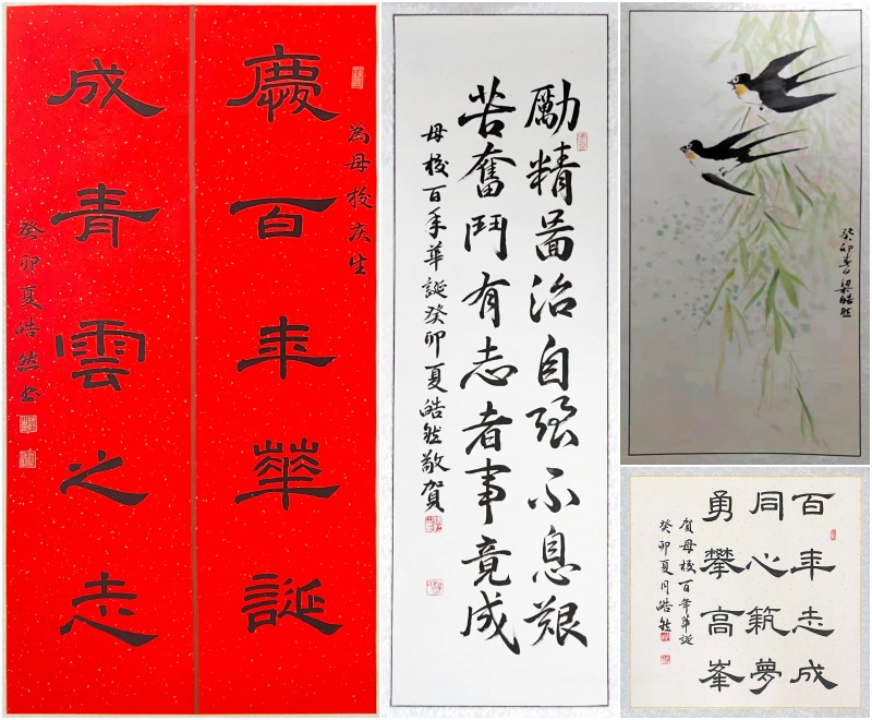 逻辑上百年校庆应该是一个教育孩子们,尤其是当下在校学生的良好机会,结果确是没有感受到应有的气氛。组织的集体活动要么晚上,要么周末,只有有限的志愿者才能参加,皓然同学作为书画爱好者为此活动在暑假前写过几幅字,活动期间现场展示墙挂了两幅,绝大多数同学估计就更没有参与感了。也许是某些领导来校为了安全,也许是工作日真的没时间,也许是……反正作为家长还是挺遗憾的,当初选择35中,百年校庆还真是一个很重要的参考因素。